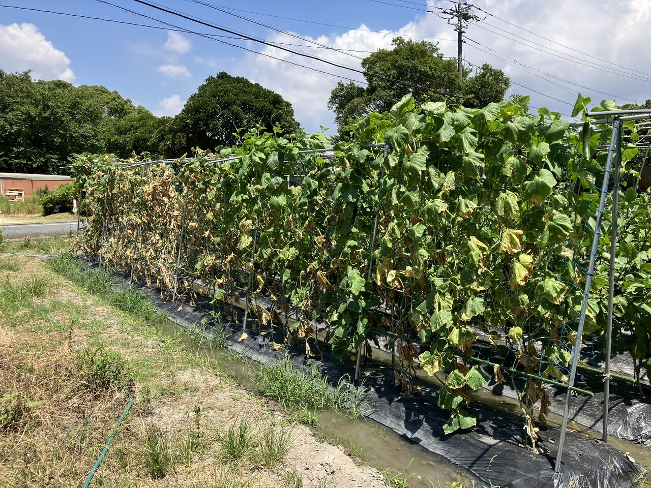 6月19日に苗を植えて、例年より1か月遅れでようやく金ウリが採れるようになりました。