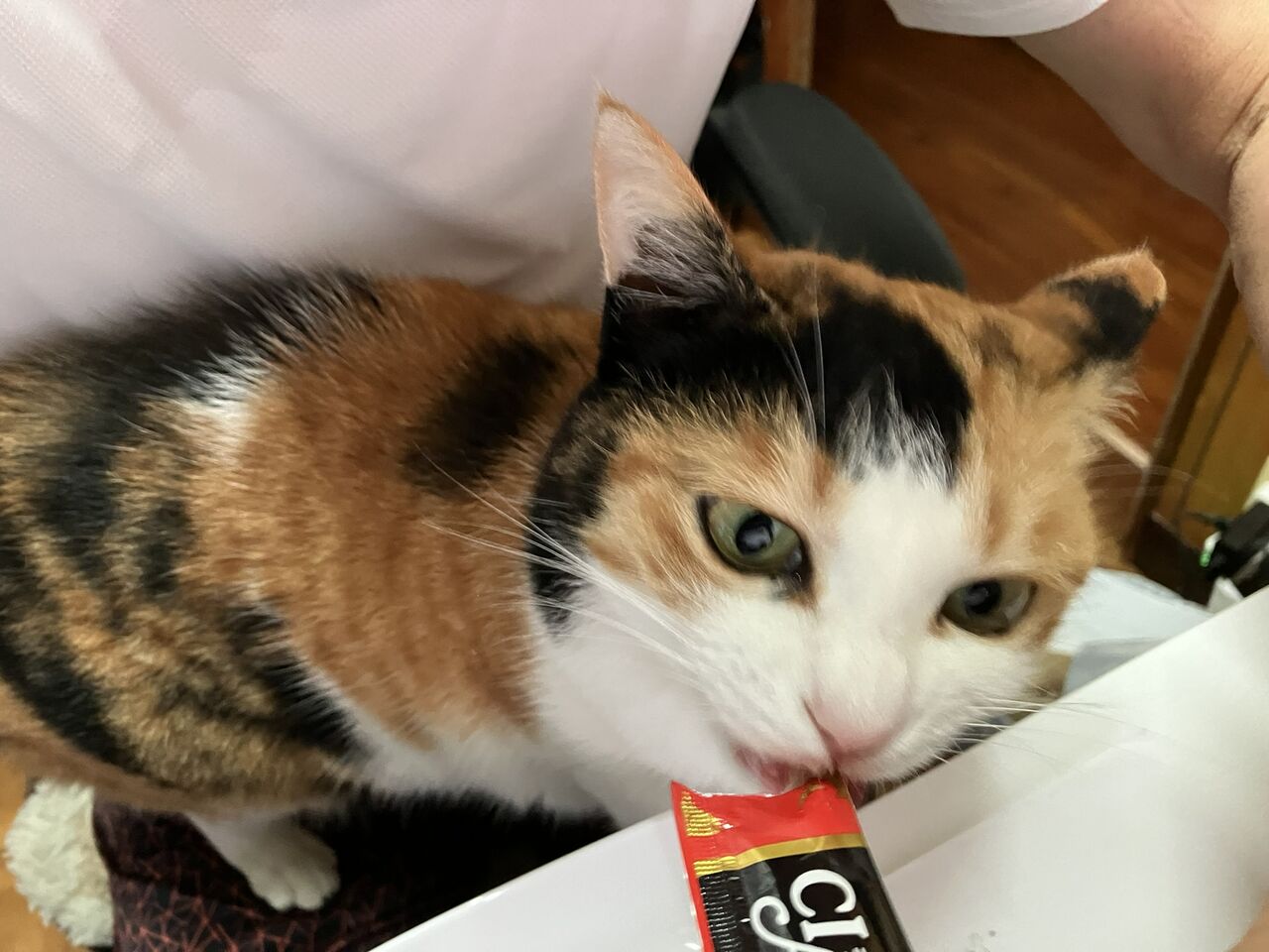 おやつは朝7時頃に家内からももらってます。両方にもらわないと催促します。