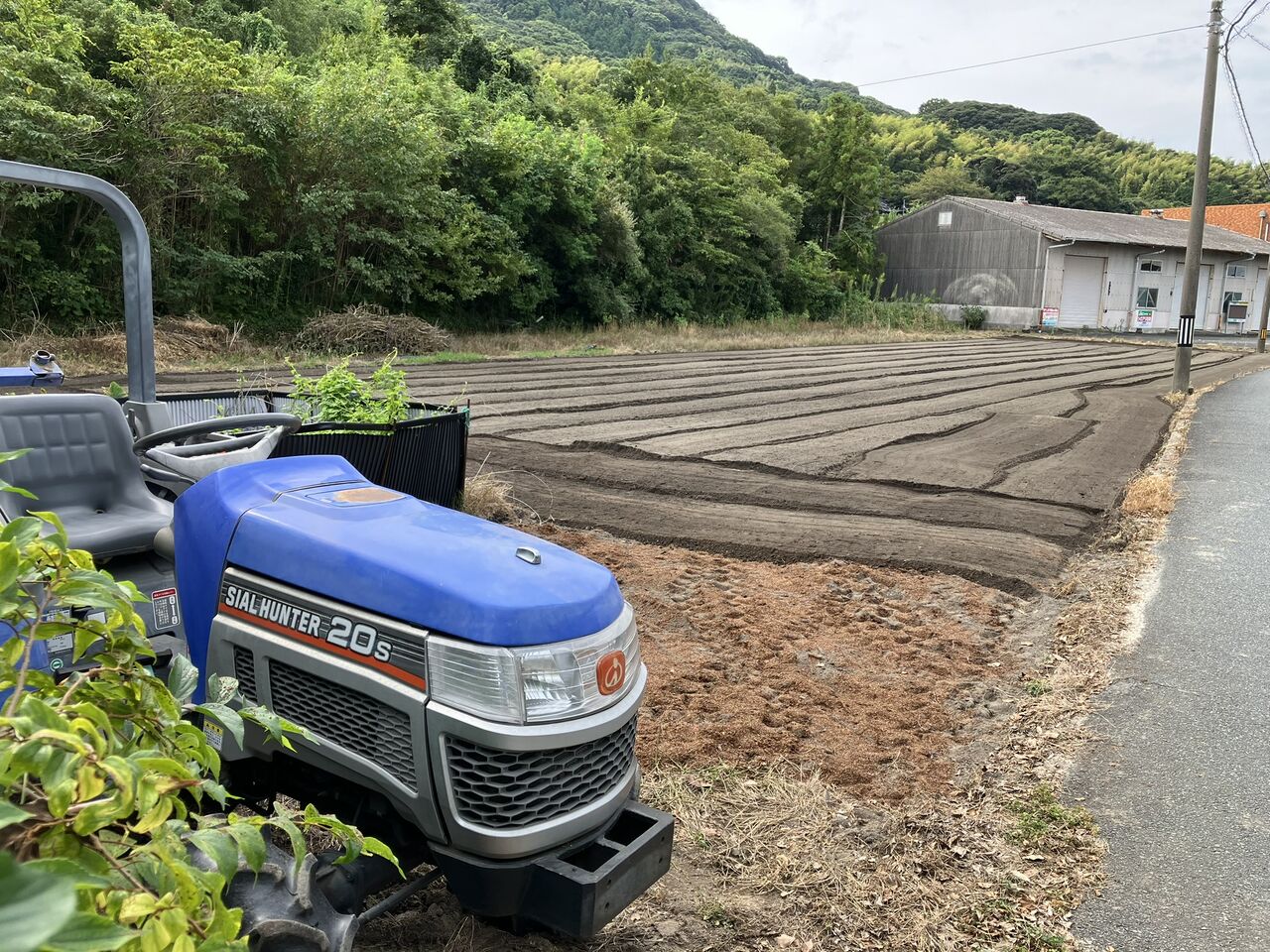 マリンカル(カルシウム肥料)を撒いてトラクターで鋤き込みました。