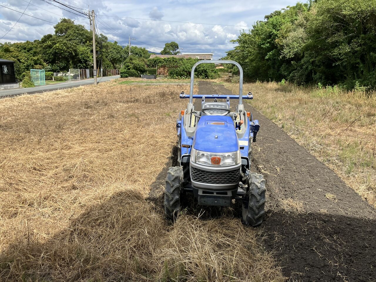 東西方向は大型耕運機(ヤンマー YA100)で掘って、端の南北方向は一輪管理機(イセキ SX60)で掘りました。端の堀り残し部分は平鍬で人力で掘りました。
