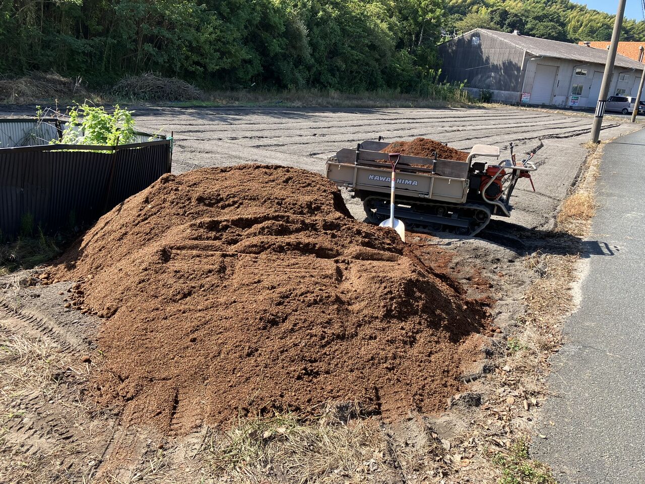 朝、中村牧場さんに牛ふん堆肥を持って来てもらいました。