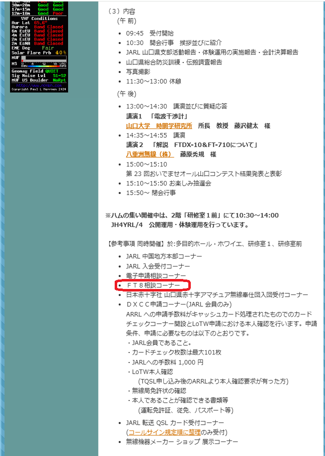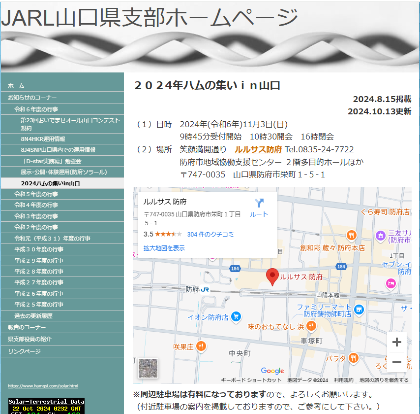 今年も11月3日(日) に「2024年ハムの集いin山口」が開催されます。