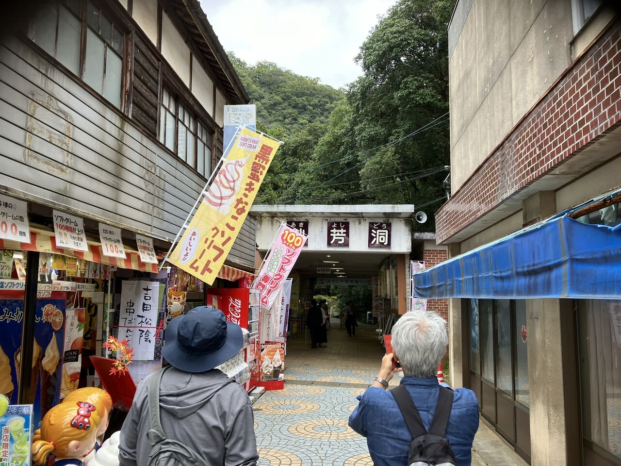 ホストの2人は中に入らず、車で黒谷口に回って待ちました。秋吉洞の土産物店は閉まっているところが多くて、昔ほどお客さんが来なくなっているようです。