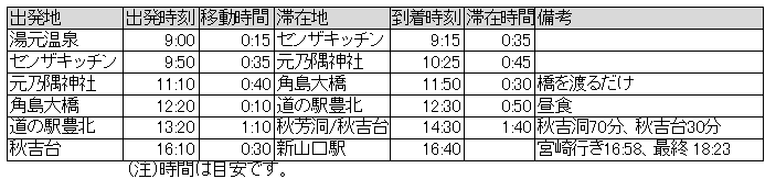 旅行計画です。ちょっとハードスケジュールですが、観光バスが行きそうなルートにしました。(^^;