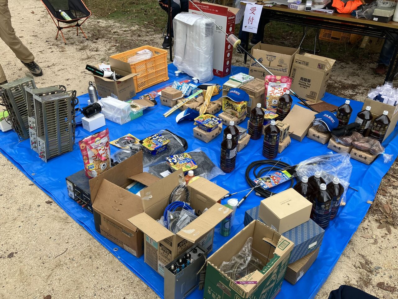 お米や芋は人気がありましたが、参加者全員を一巡しても残ったものが多いので2巡目がありました。2巡目では人気のないオイルレスヒーターをもらってあげました。最後の方は「お願いだから持って行って」いう感じでした。(笑)