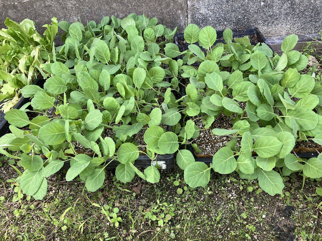 ハクサイ、ブロッコリー、ダイコンがだいぶ育ってきました。ハクサイ、ブロッコリーは苗が不ぞろいだったので早く大きくなった株と、まだ小さい株があります。ハクサイは結球が始まっていますが、育ちの遅い苗はまだ結球していません。