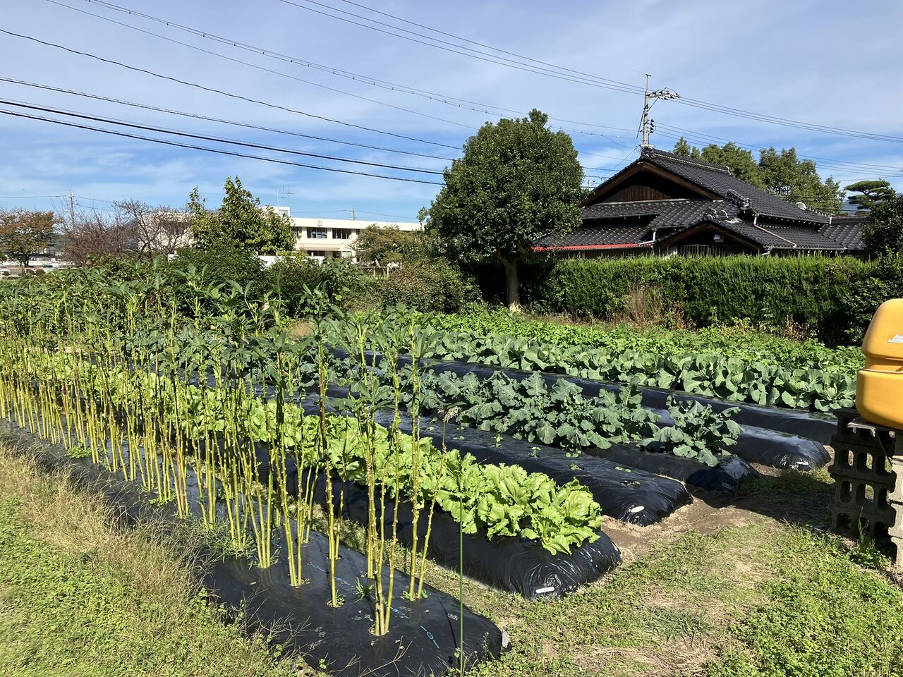 オクラの畝は自家用のハクサイを植える予定だったのですが、苗が足らなかったのでオクラを抜かないでおいてあります。寒くなったので、そろそろ実が生らなくなると思います。