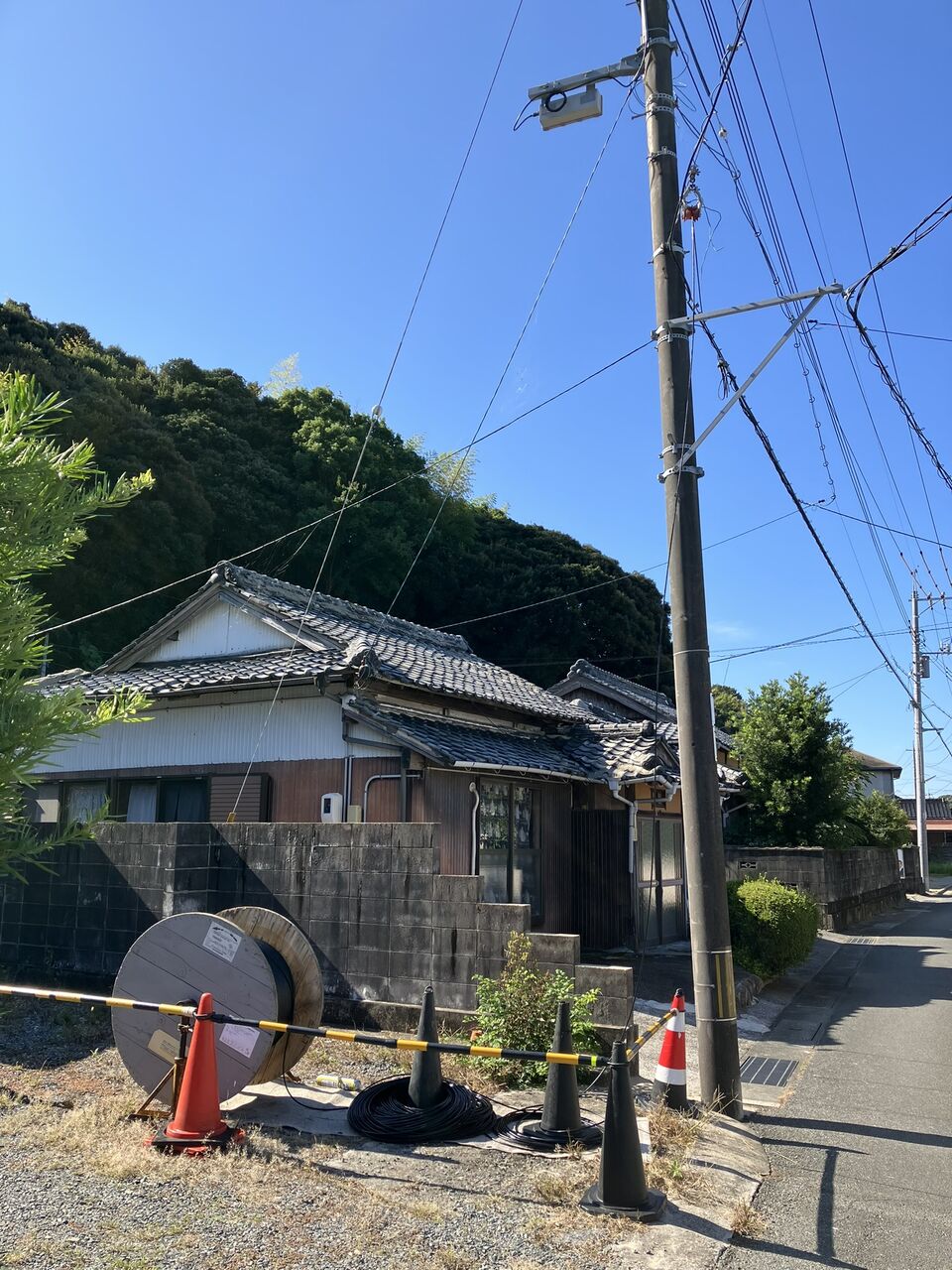我家の前の道路の電柱は10月11日に光ケーブルを引いていました。