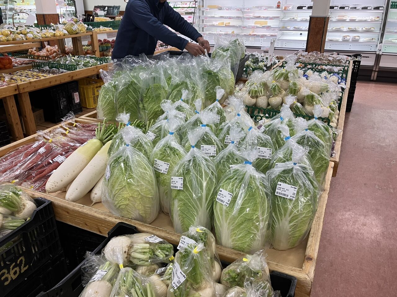 私は1.5kgのハクサイを300円で出していますが、スーパーと比べると格安ですね。