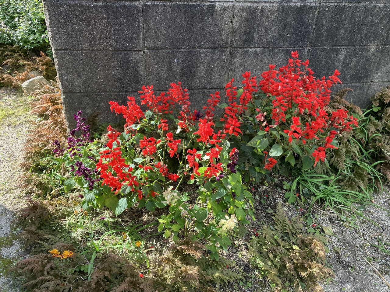 サルビアは裏庭に植えたので、猛暑の夏の間も枯れずに咲いていました。