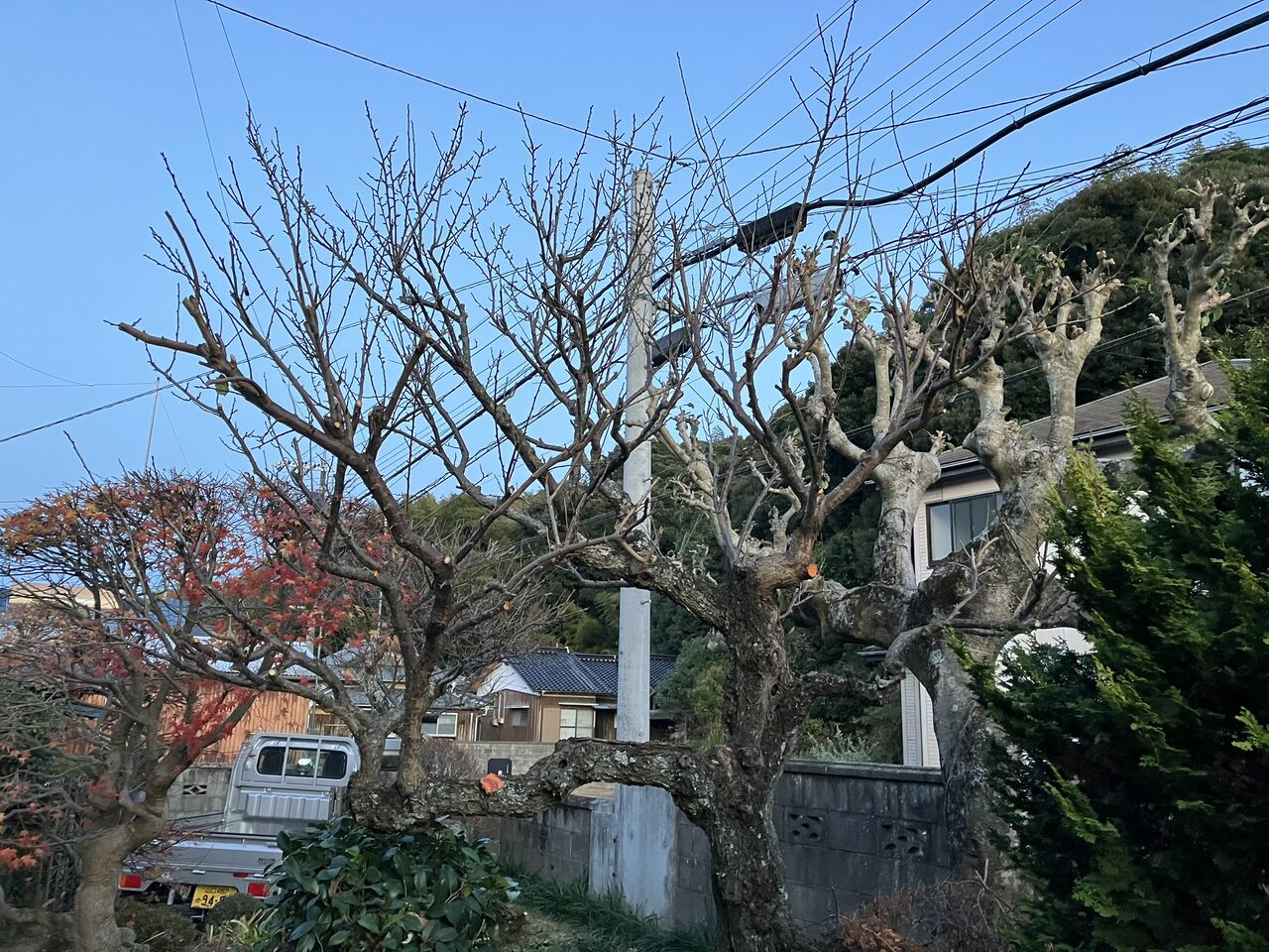 和室前の梅はバッテリー剪定ばさみのバッテリー切れで細い枝が残ってしまいました。改めてやります。