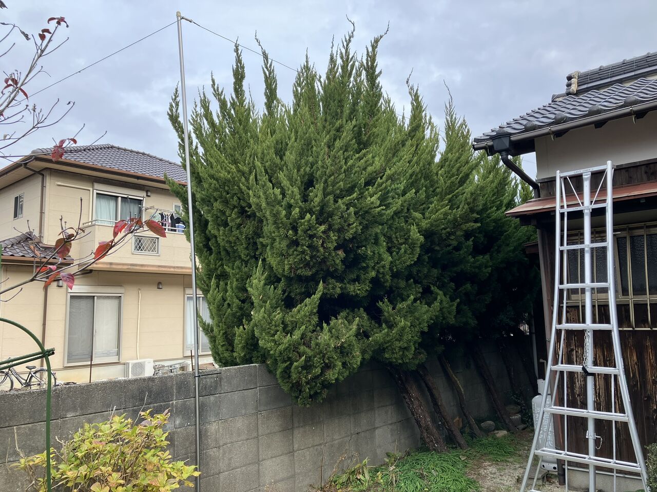 裏のカイズカイブキは2年間剪定していないので、かなり切らないといけません。