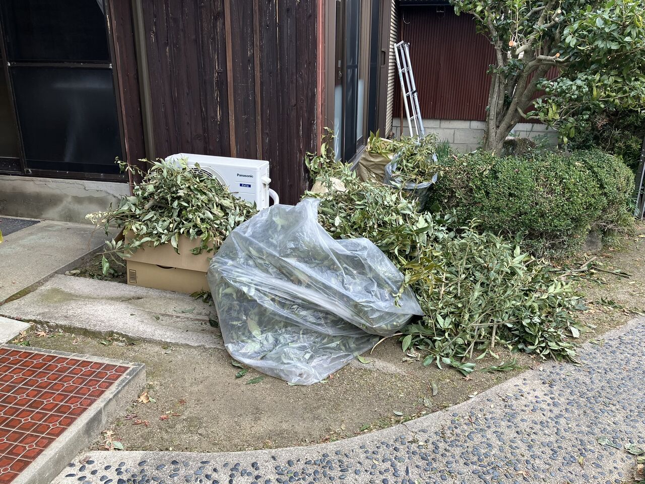 直近では12月23日(月)に西側の生垣を剪定しましたが、その後出荷や行事で忙しくて剪定した枝葉が庭に置いたままになっていました。