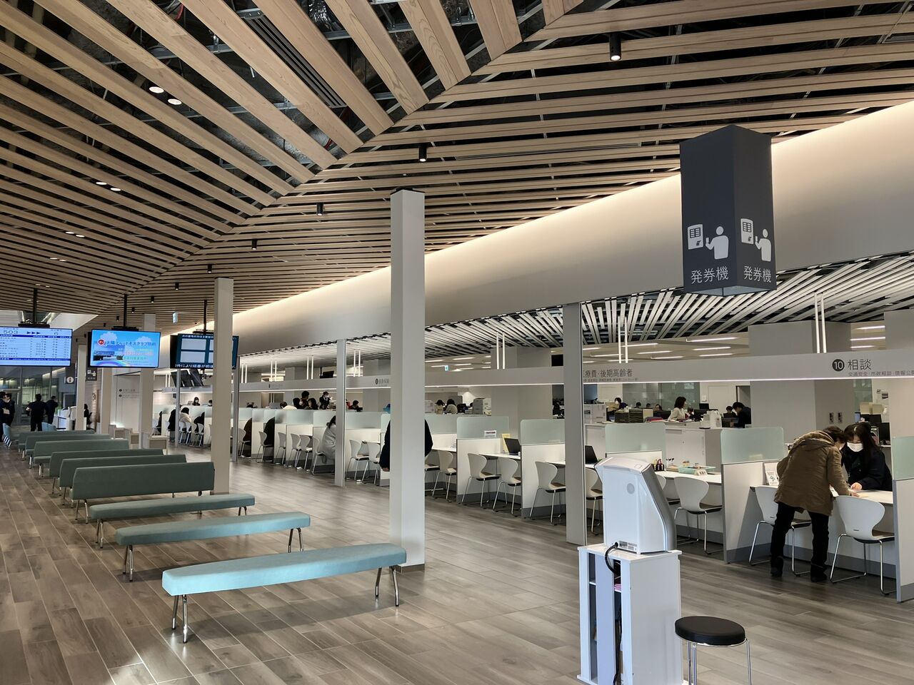 一階の窓口です。市民課と保険年金課の窓口があります。早い時間なのでお客さんはあまりいなかったです。案内係と掃除係の人の方が多かったです。