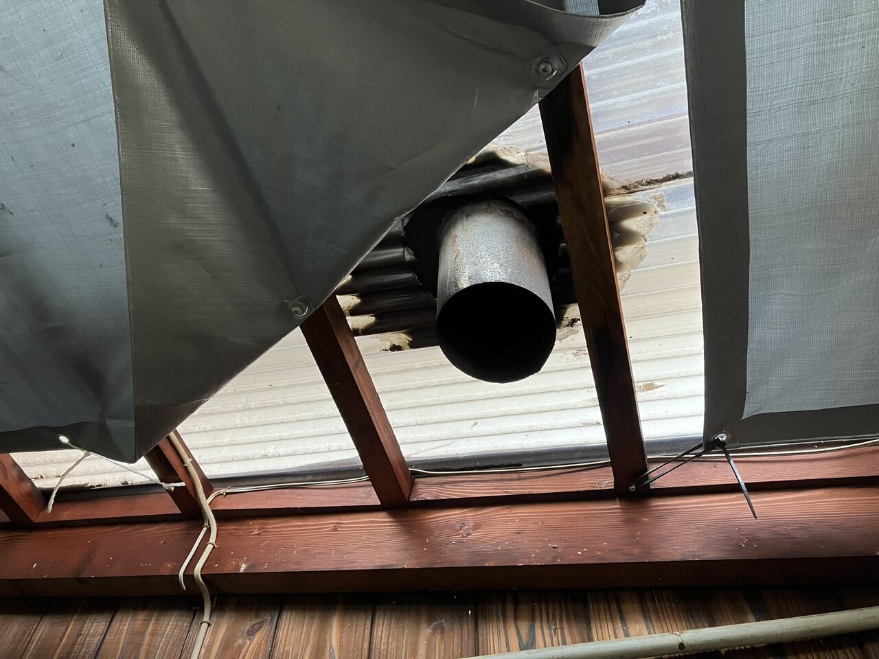 煙突は途中から外してもらいました。上部は自分で撤去して穴を塞ぎます。