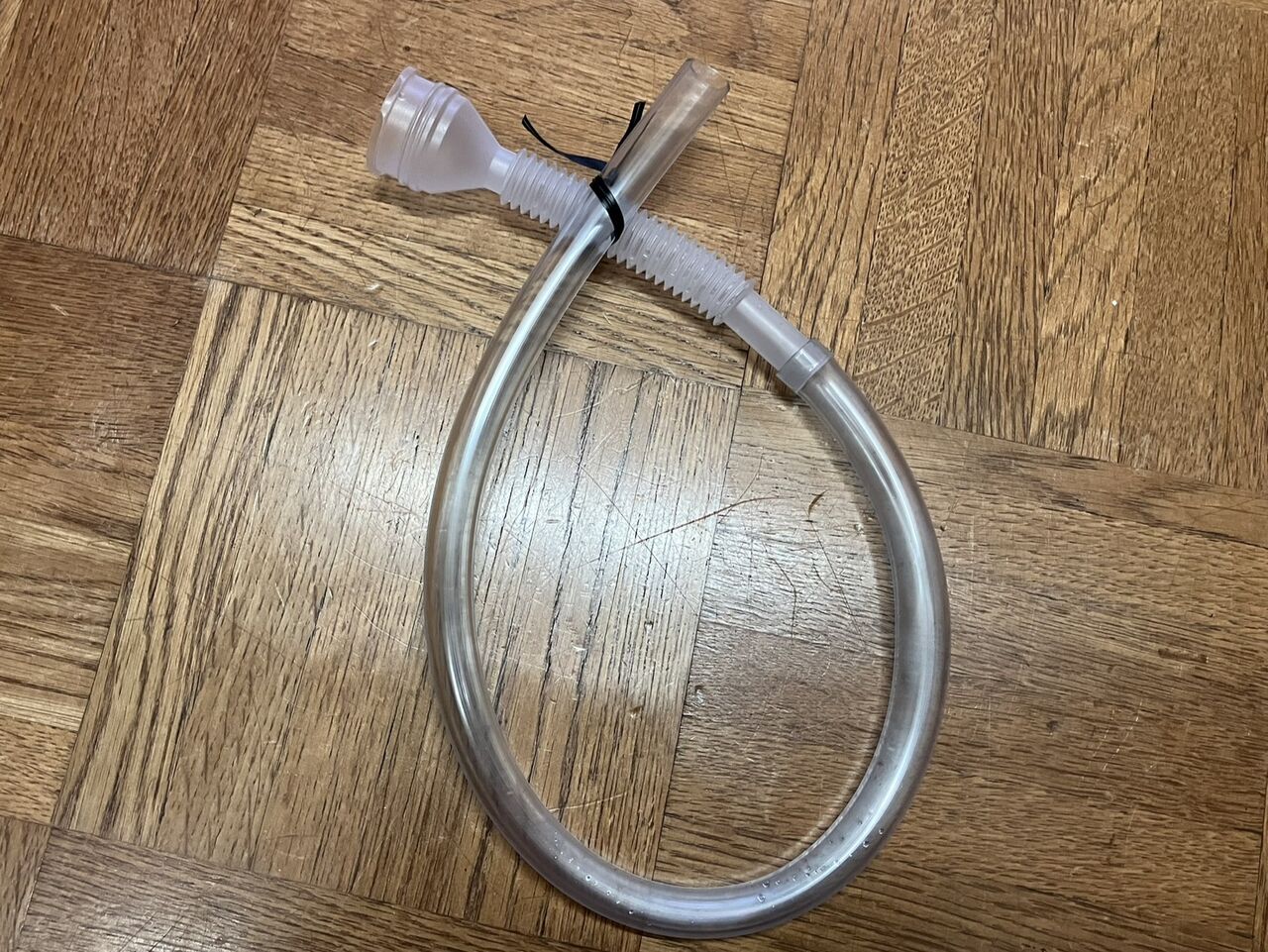 ガス風呂釜の中の電動ポンプ部分に水が入っていないとポンプが動作しないので設置時に呼び水を入れるためのものだそうです。長期間使わない時に水抜きが必要なので、水抜き後に使用開始する際はこのチューブで呼び水を入れないといけないそうです。
