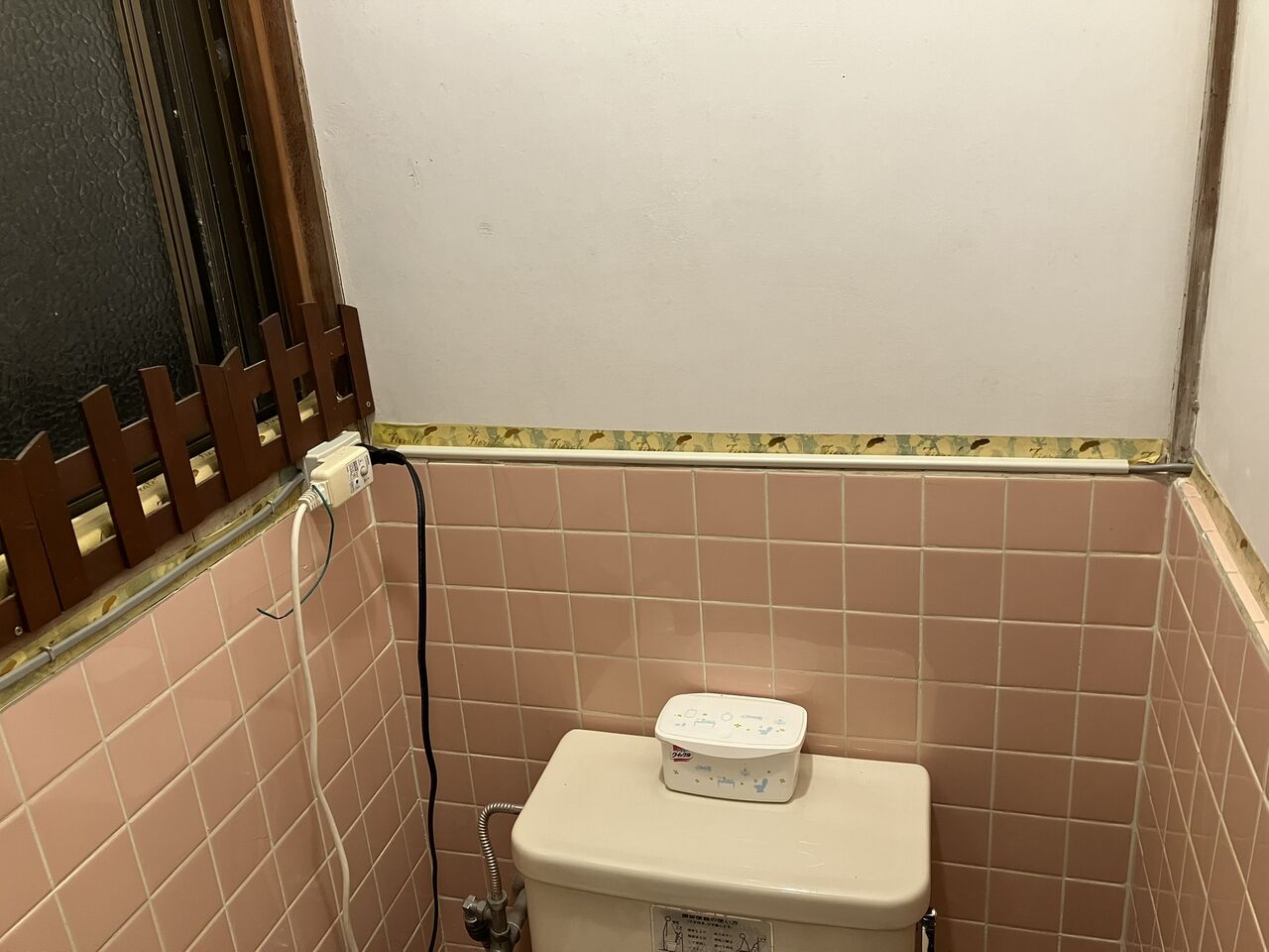 トイレ入口横の壁コンセントが別系統なので、そこから配線する事にしました。