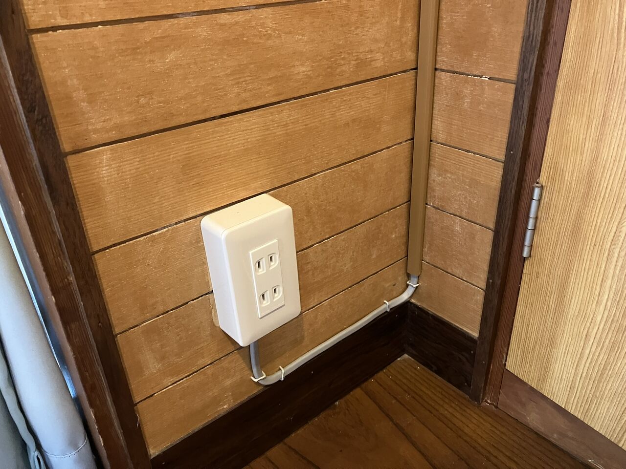 更衣室に露出コンセントを増設してオイルフリーヒーターを接続しました。
