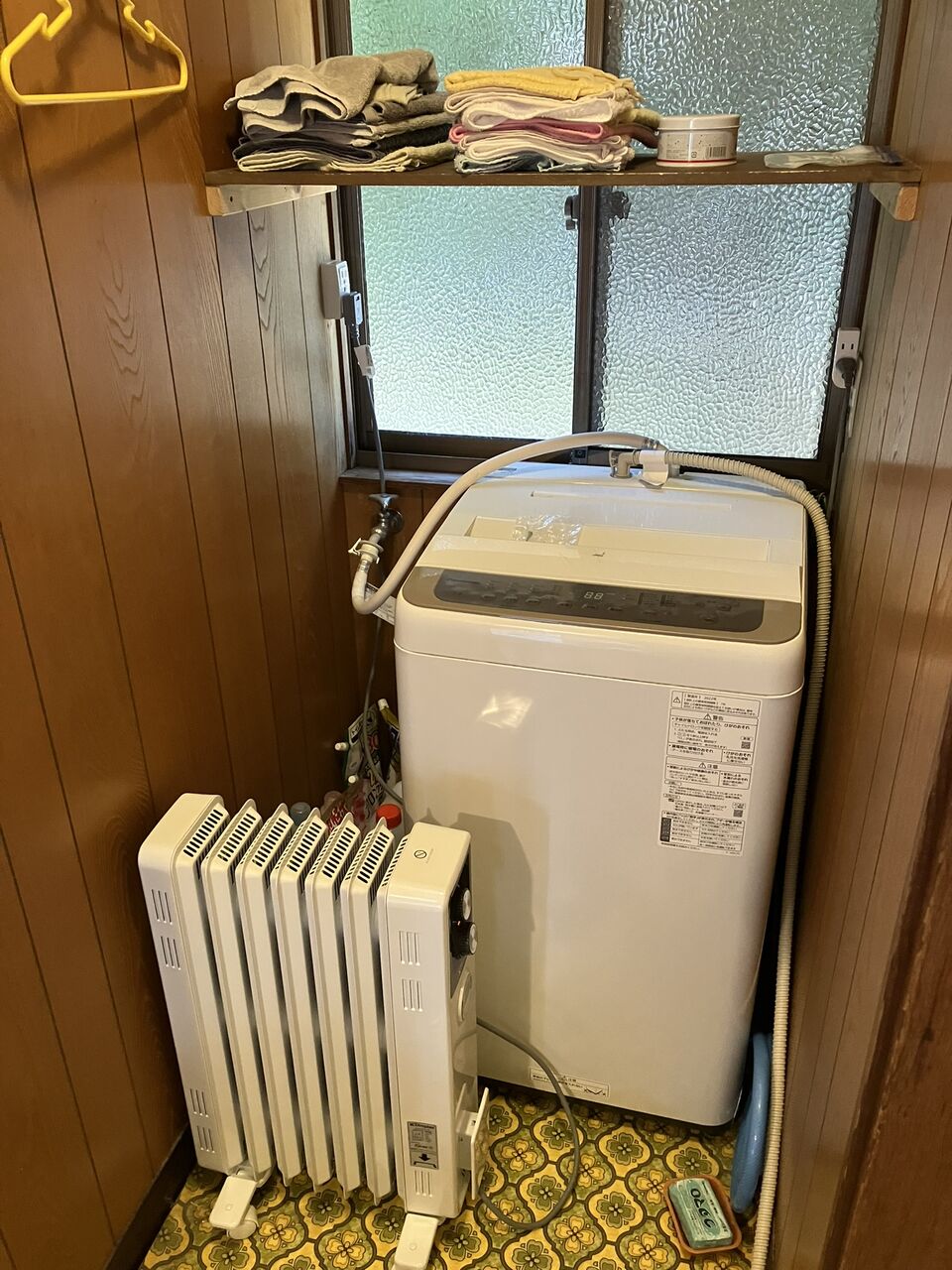 年末に風呂のボイラーが故障して追い炊きが出来なくなっていましたが、風呂から上がった時に脱衣所が寒いのでオイルフリーヒーターを置いてみました。