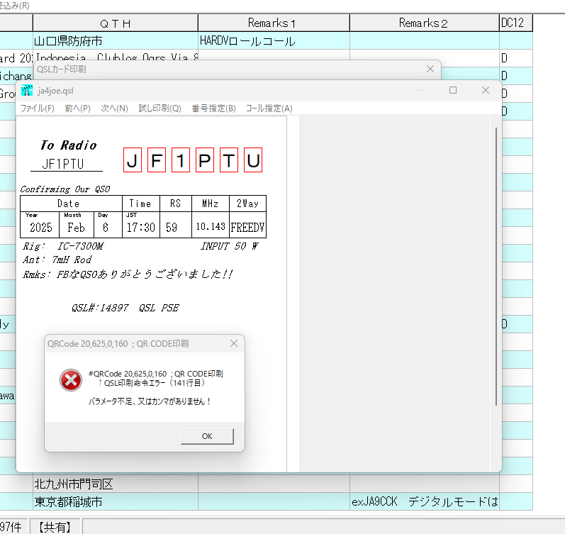 ・QRコード印刷で、HAMLOGユーザーリスト未登録局が自局コールサイン