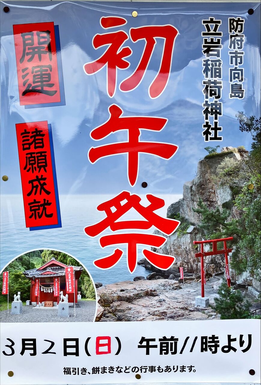 自治会館の前を通ったら立岩稲荷初午祭のポスターが掲示されていました。