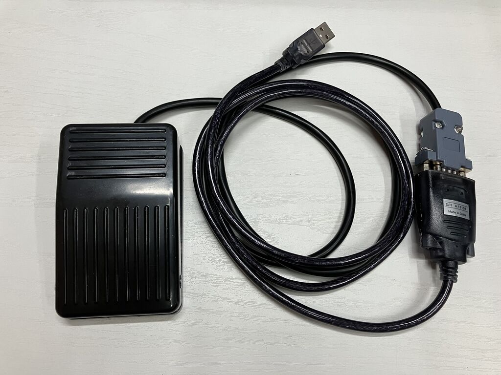 フットスイッチとUSBシリアルケーブルを接続した状態です。