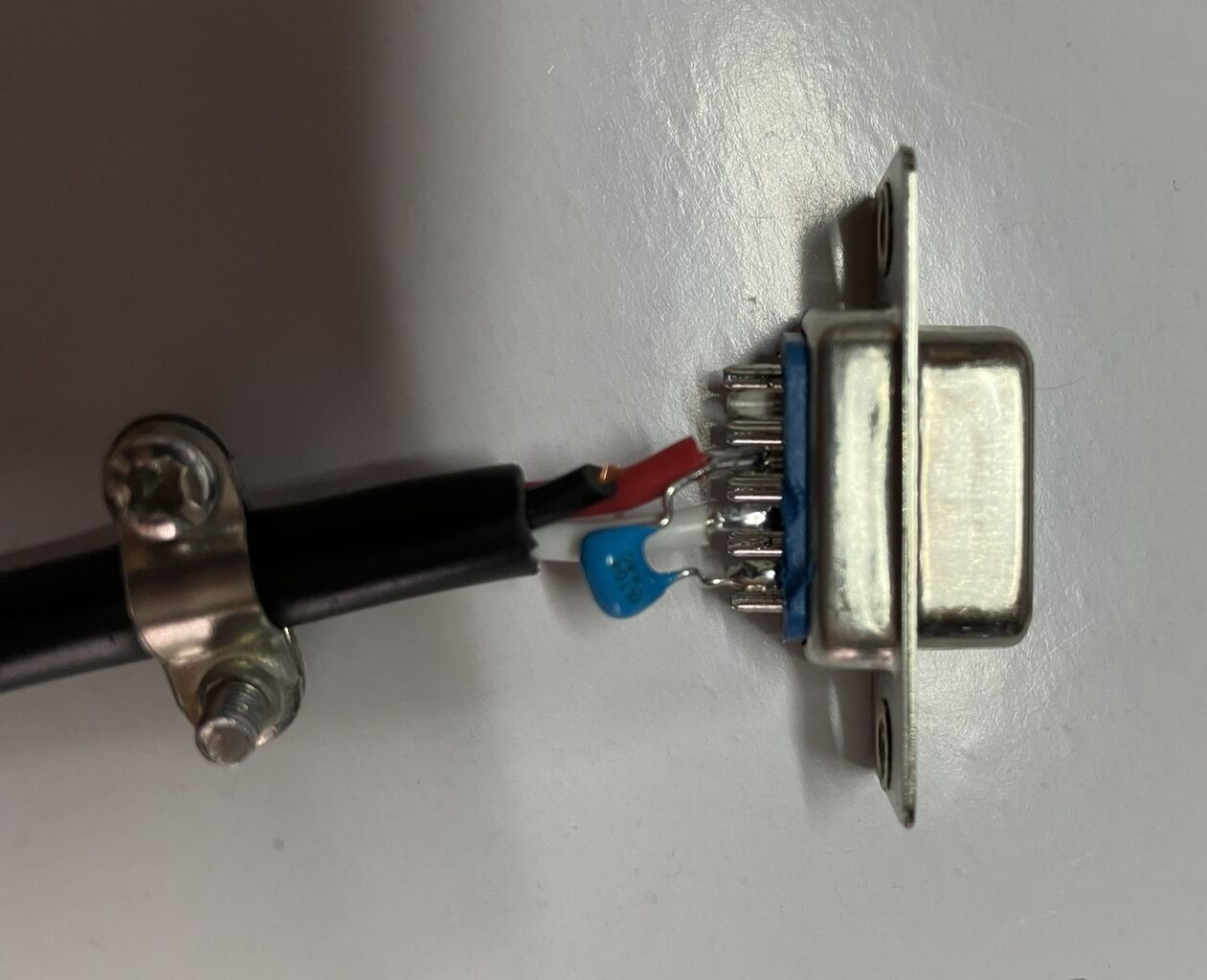 フットスイッチの中にチャッタリング防止用のRCを入れたかったのですが、フットスイッチの分解が難しそうなので9PINコネクタの中にコンデンサを入れました。0.1μFのセラミックコンデンサをGND-CTS間に入れました。