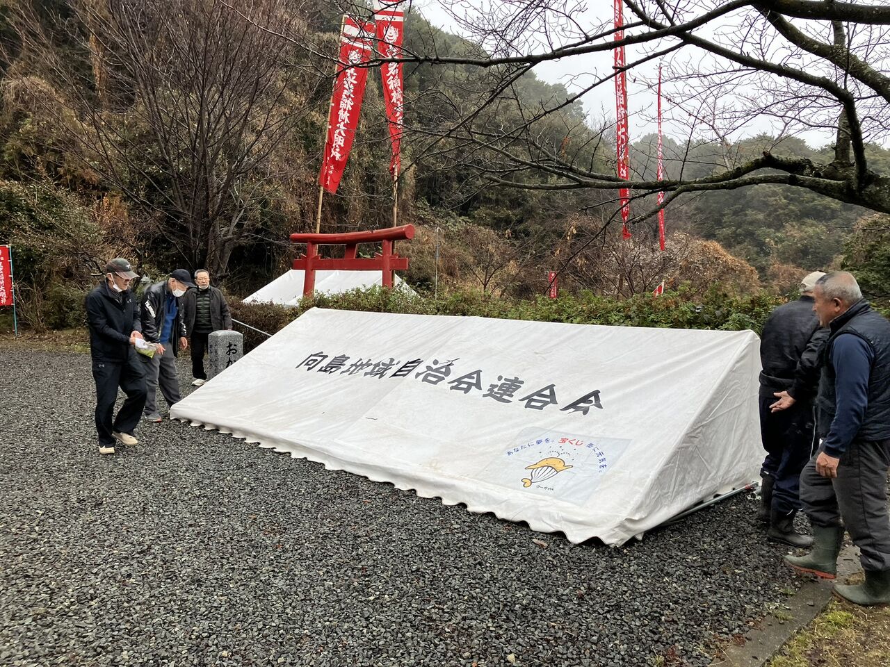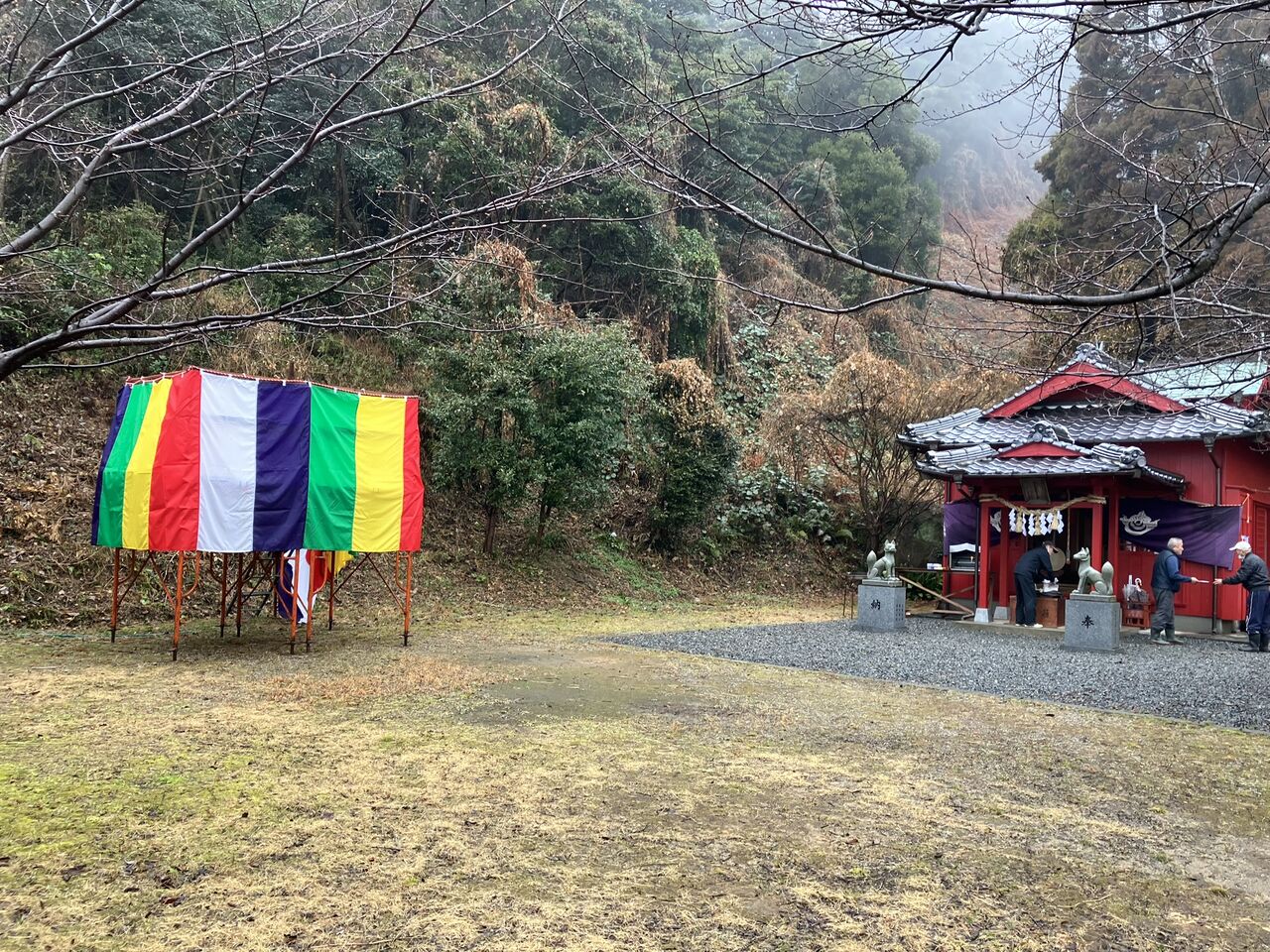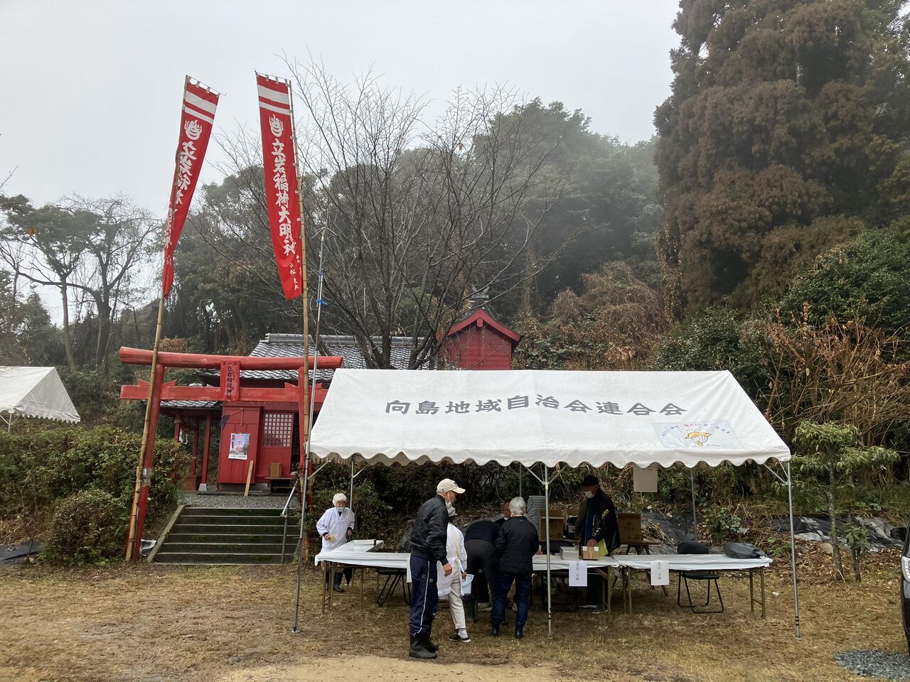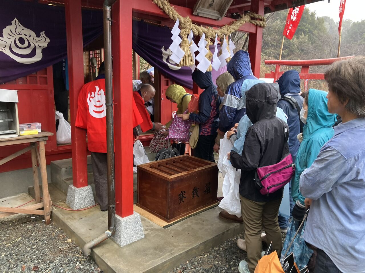 11時から神事が始まり、お客さんは境内で餅まきを待ってました。ざっと数えたら来賓を入れて60人くらいの人が来られていました。