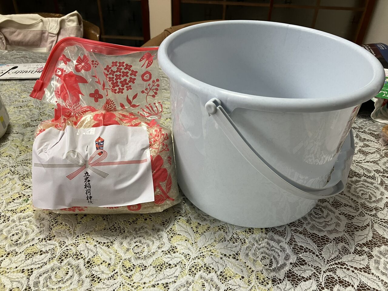 私も初穂料を納めて福引を引いてバケツが当たりました。