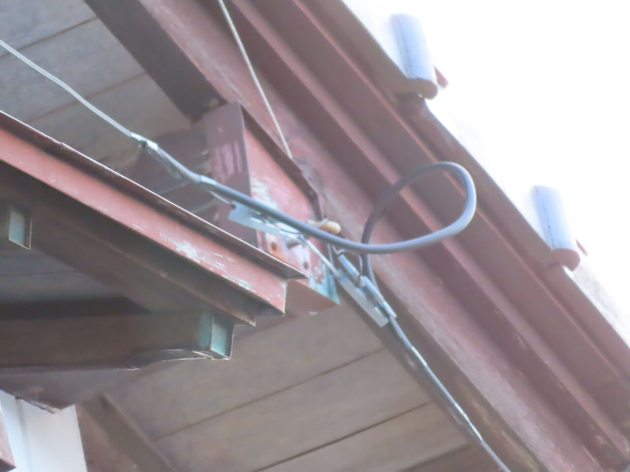引き込み線の取付は従来の同軸引き込みに使っていたフックがそのまま使ってありました。