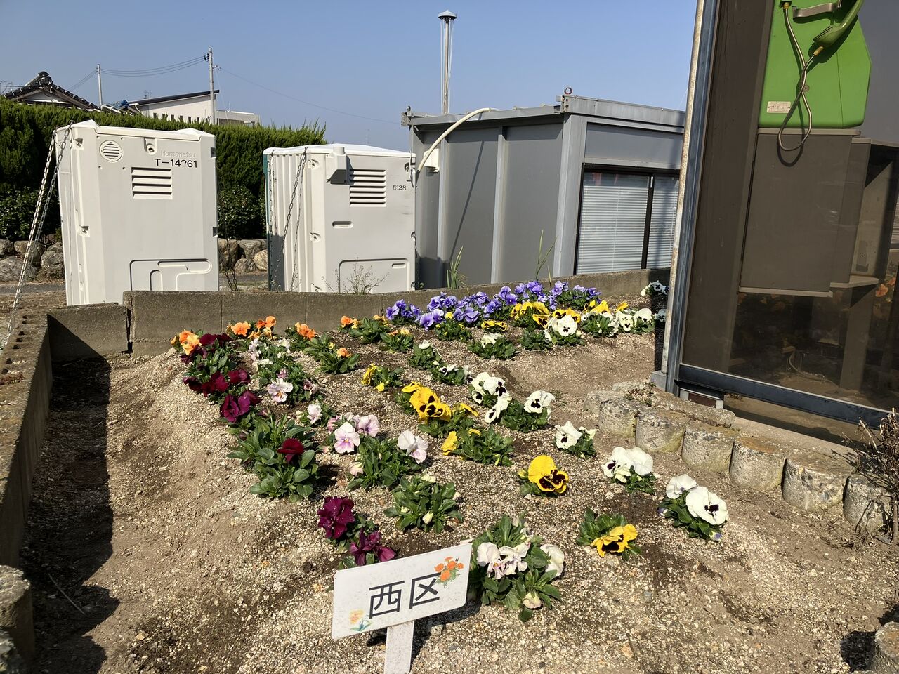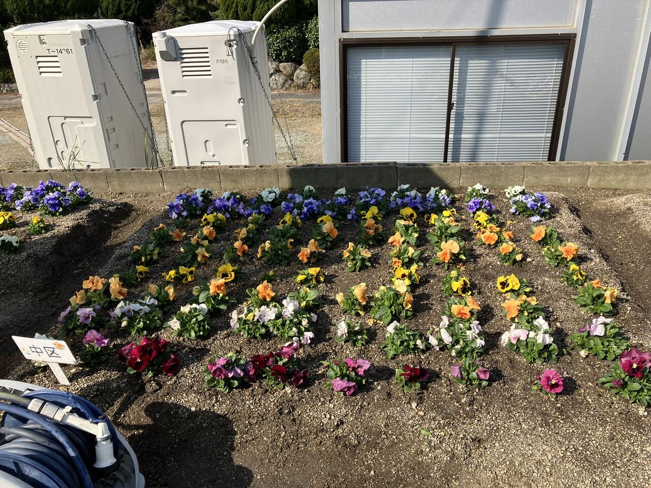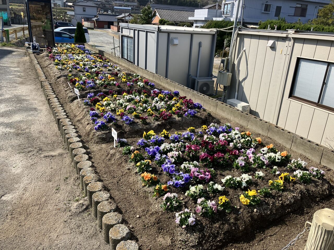 作業後の花壇の様子です。班長会議が終わってから、道具を公民館の倉庫に戻して写真を撮ってきました。