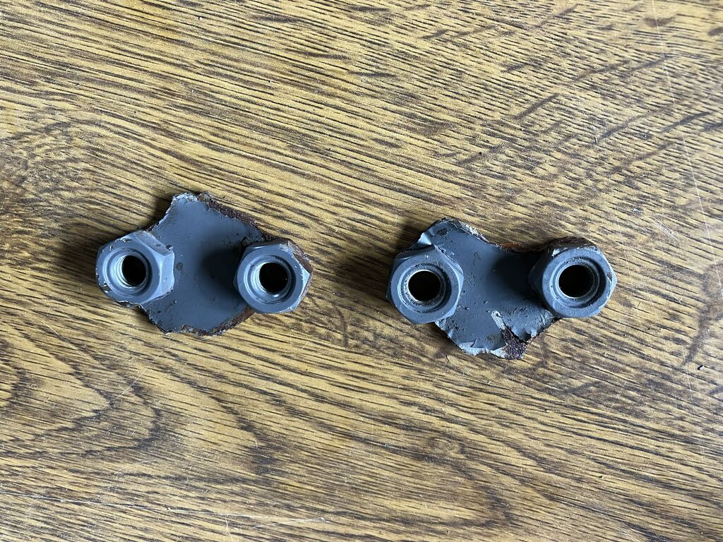 千切れた板金部分です。ナットが溶接されていますが、ナットごと千切れています。