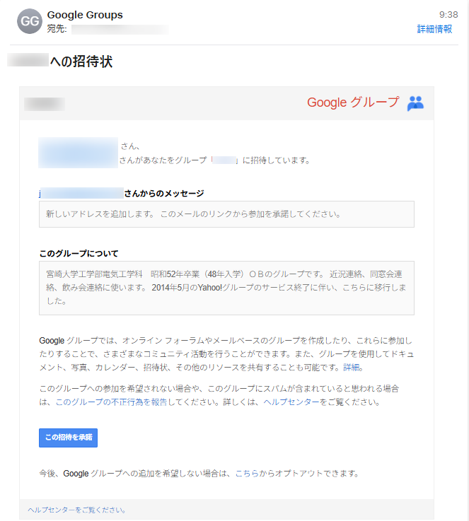 メールにある [この招待を承諾] をクリックすればグループに参加できます。