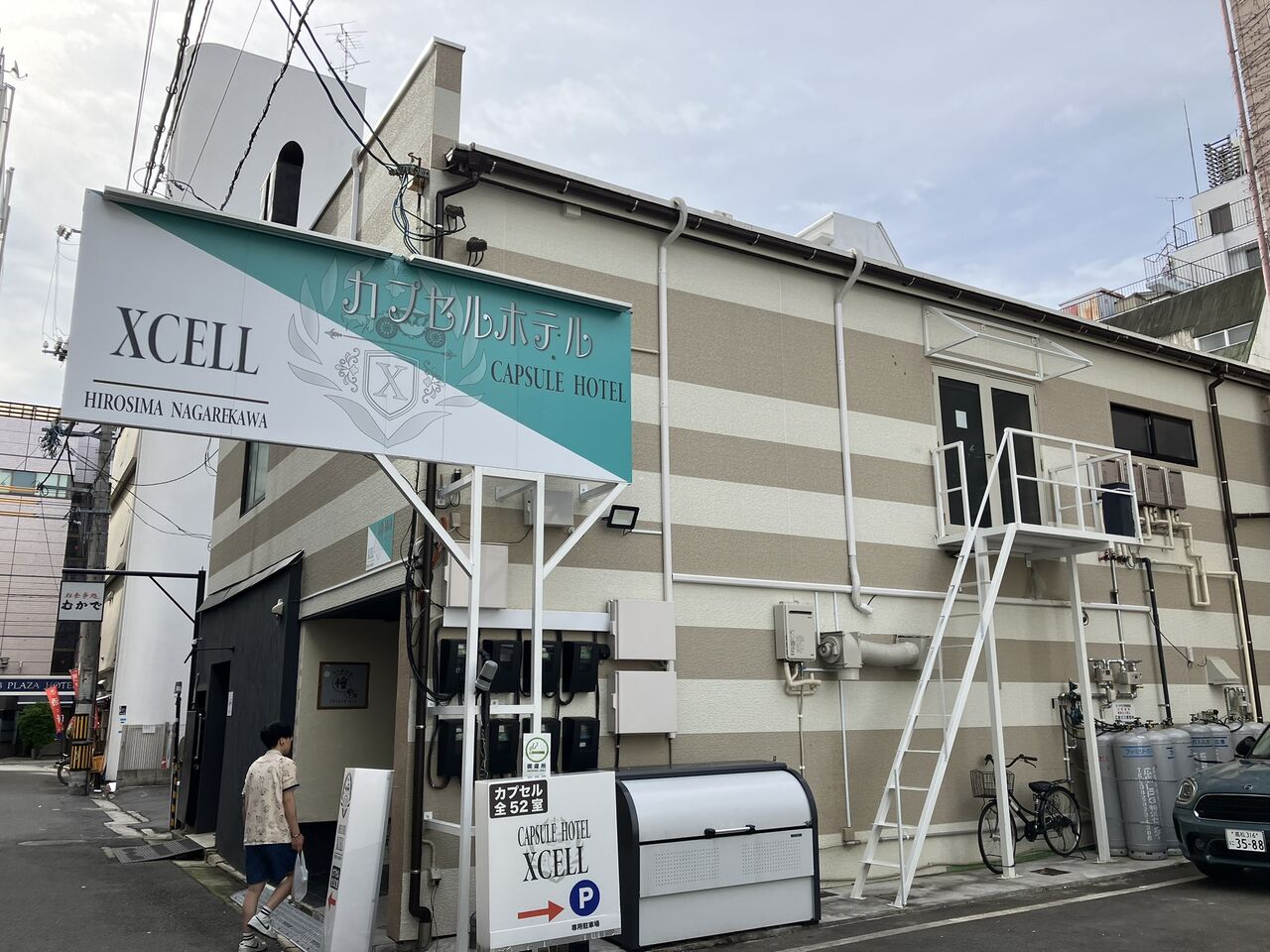 朝チェックアウト時に撮ったカプセルホテルの外観写真です。