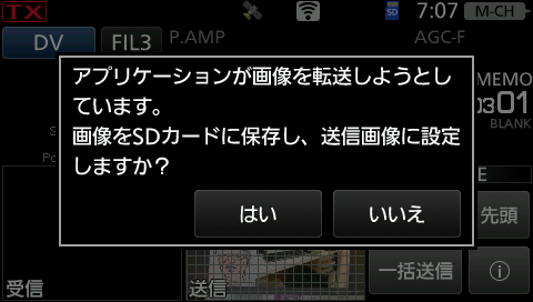 IC-705に転送の確認が表示されます。[はい] でST-4001Aから画像が転送されます。