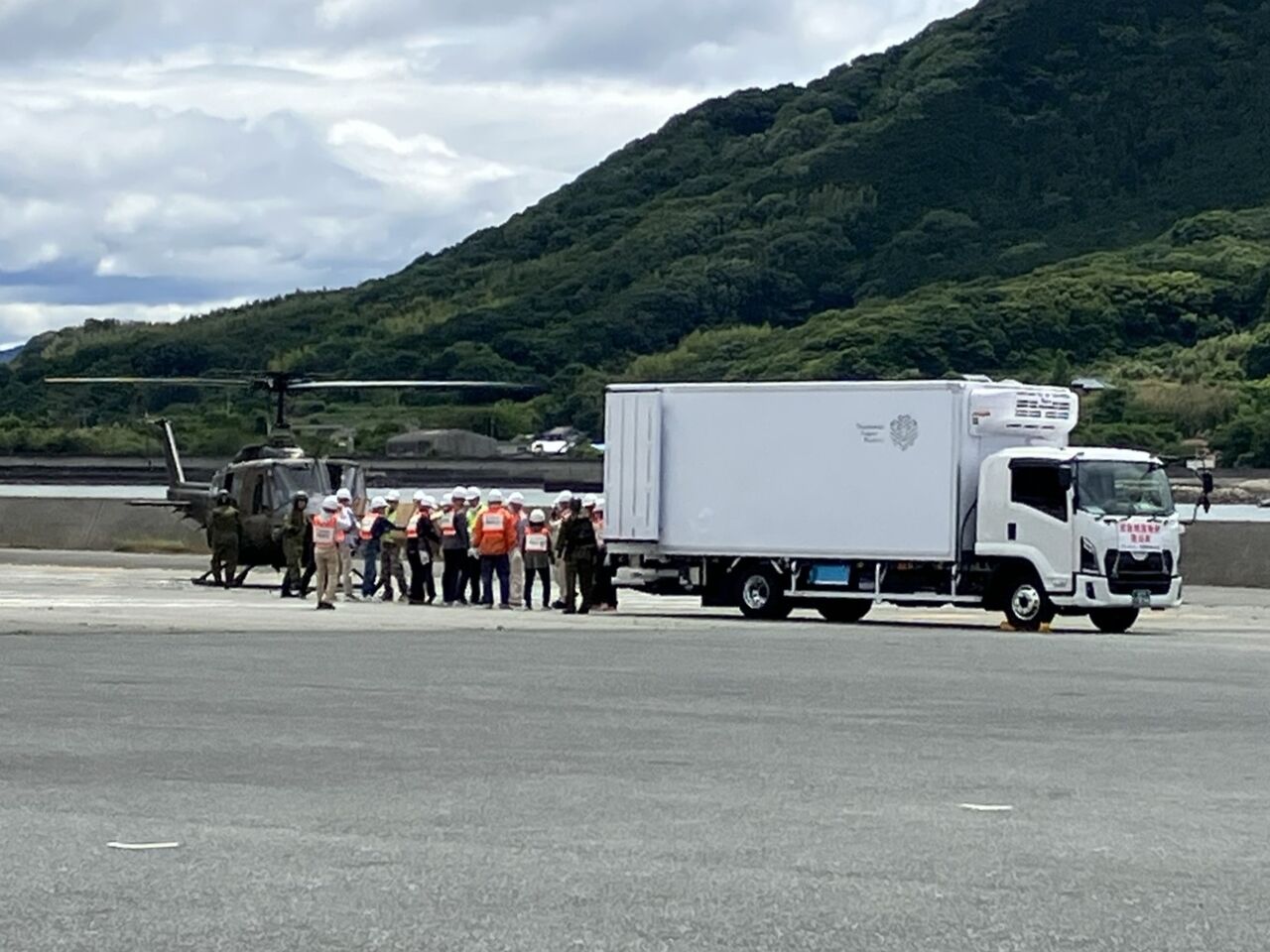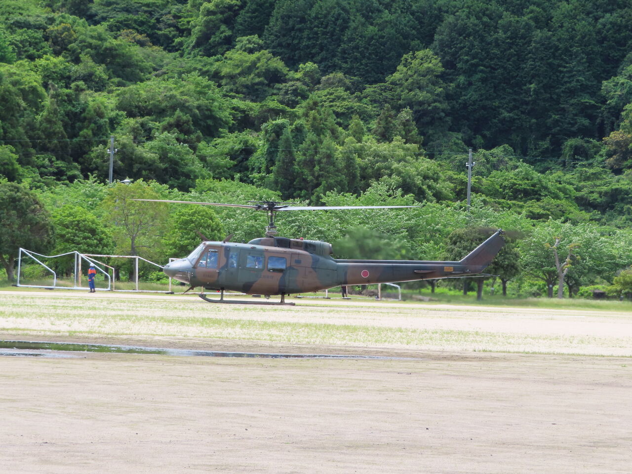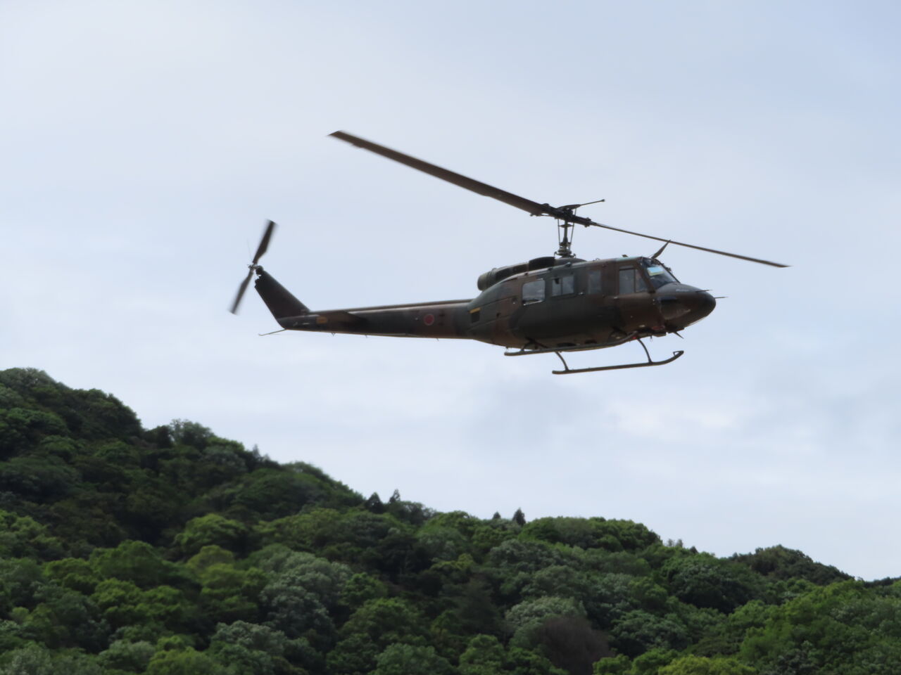 9時半頃にヘリが来ると聞いていましたが、来たのは9時45分ころでした。自衛隊のUH-1です。