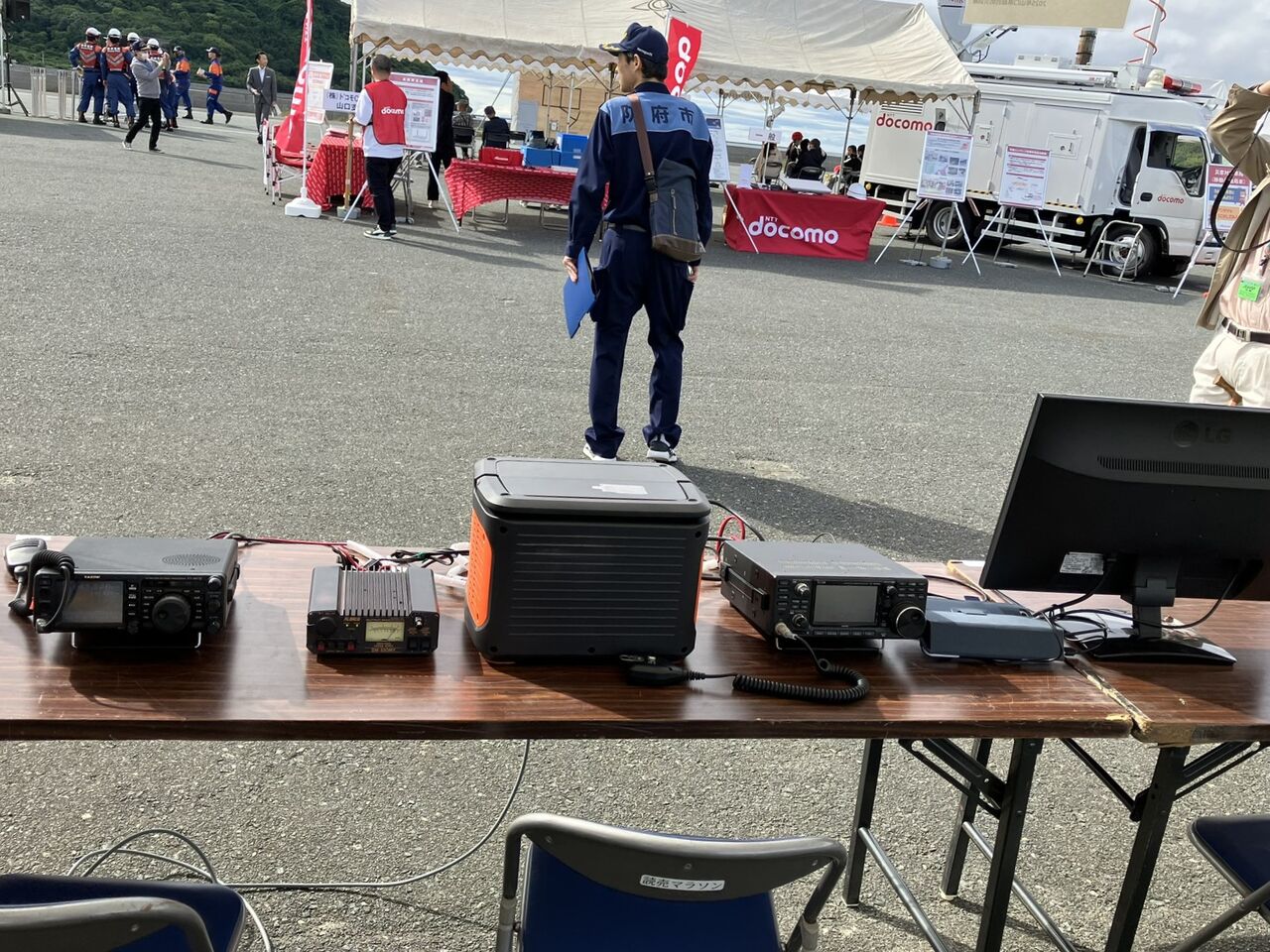 隣の山口県赤十字アマチュア無線奉仕団のテーブルです。クラブ局コール(JA4YGI)で7MHz/SSBで運用されていました。
