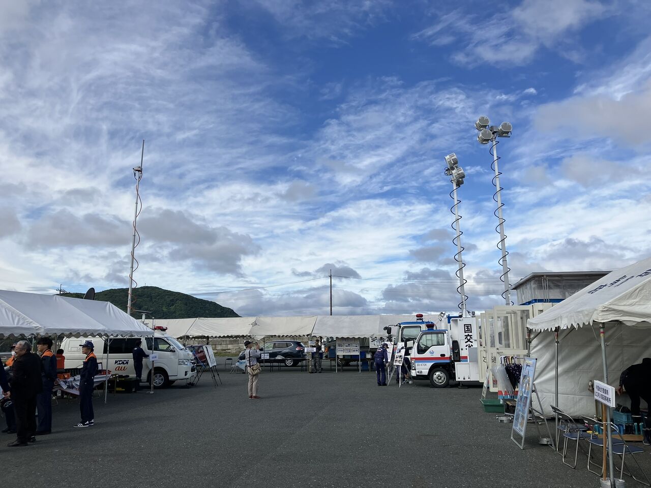 横の方にはauの移動基地局や国交省の照明車が展示されています。