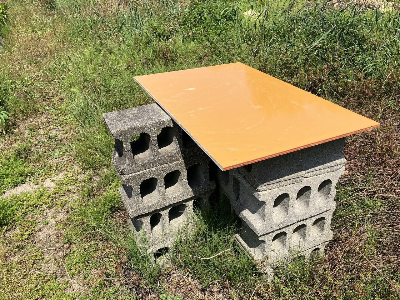 タンクは東側畑にブロックを積んで1mくらいの高さに置いていますが、下に敷いているコンパネが朽ちてきたので今回新しくしました。