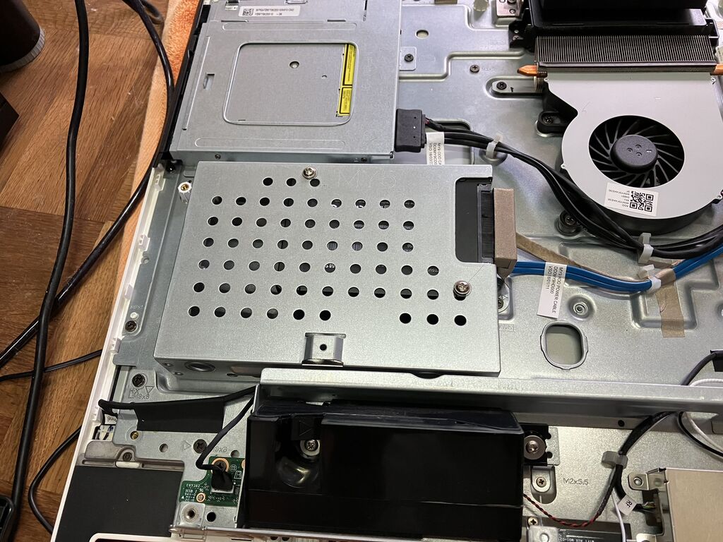 裏カバーを外した状態です。HDDのコネクタを抜いてHDDケースのネジ3本を外してケースを外します。