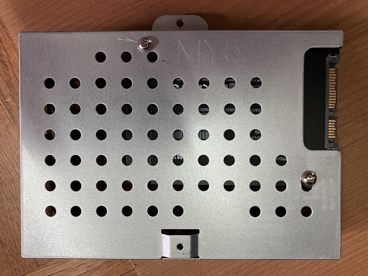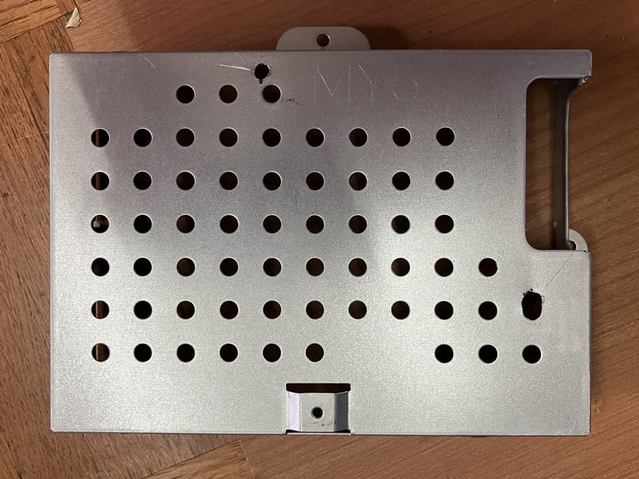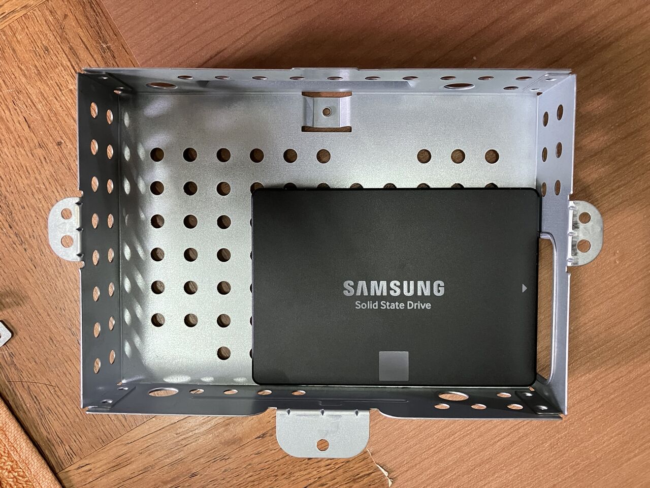 ケースからHDDを外してSSDのネジ穴に合わせてドリルで穴を開けました。