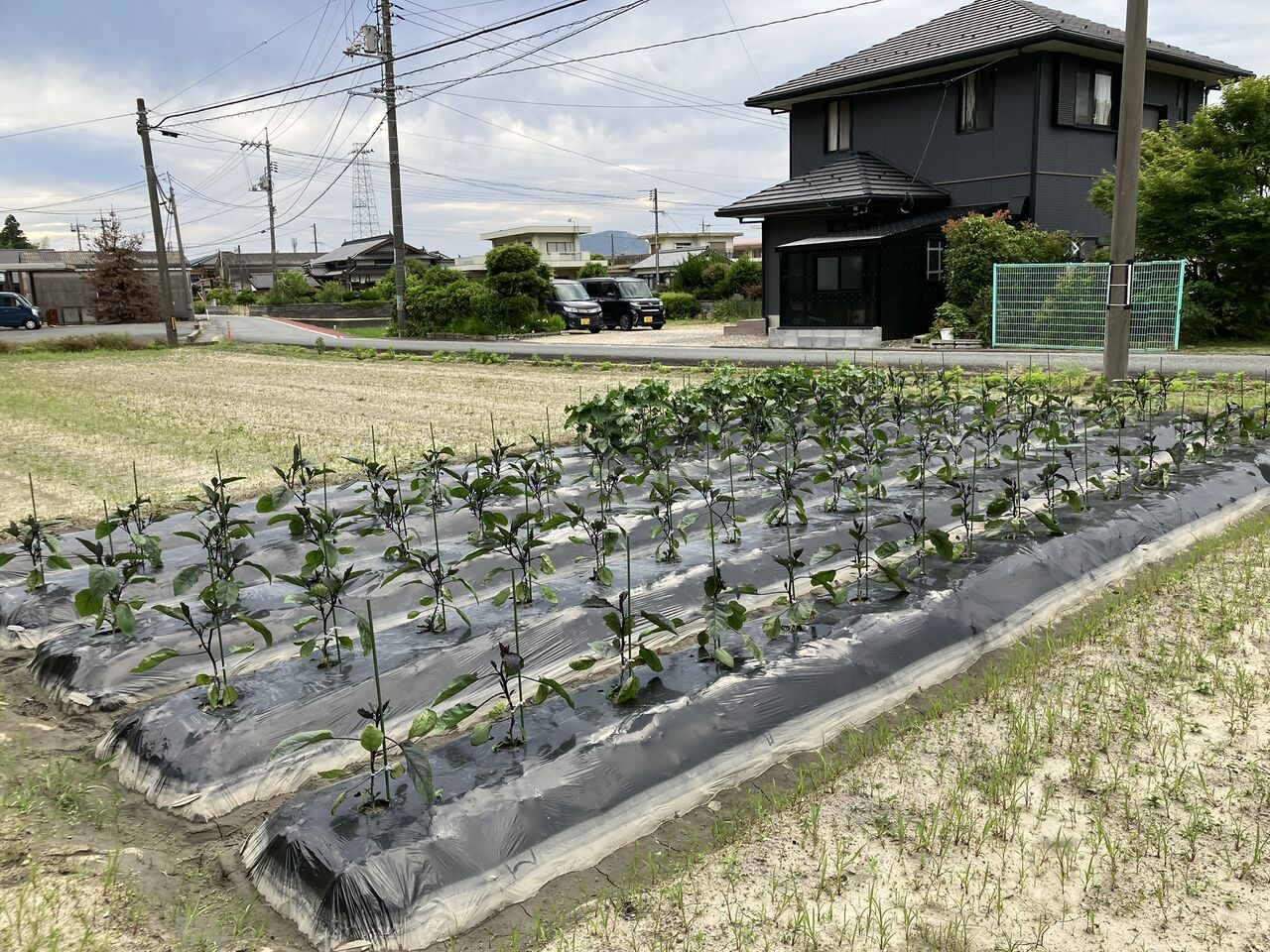 ナスも順調に育っていますが、一本だけ枯れた苗があったので苗を買って来て補植しました。