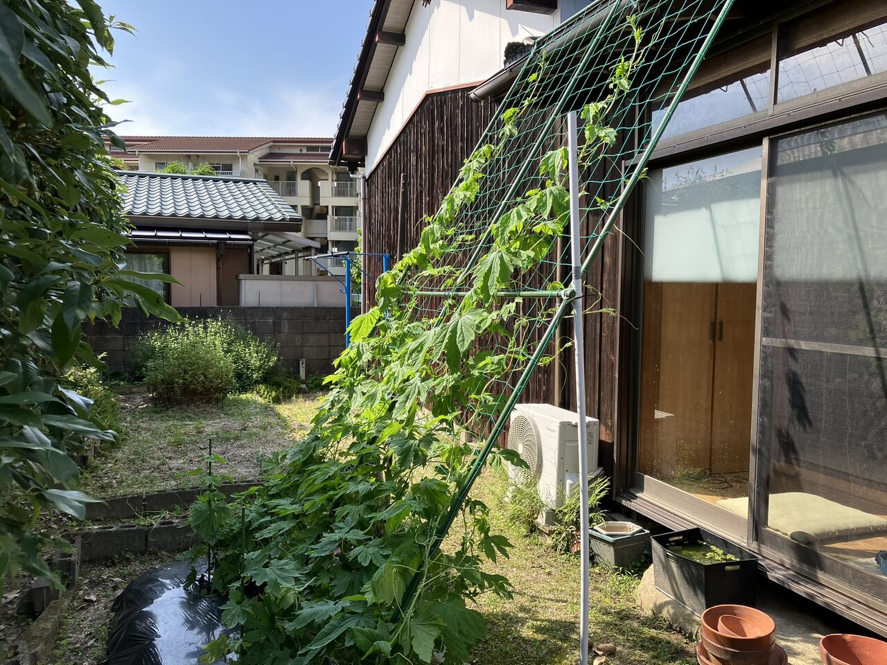 今はツルが支柱の上まで伸びてきました。