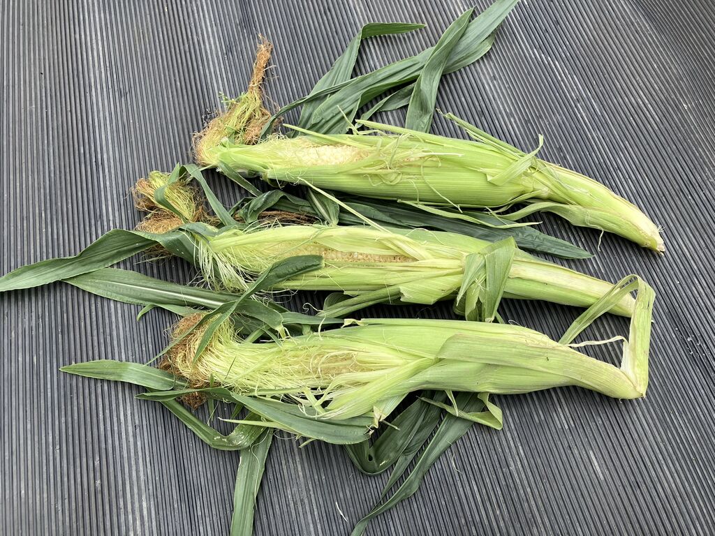先日スィートコーンにカラス除けネットを付けましたが、昨日見たらさっそくカラスにやられていました。