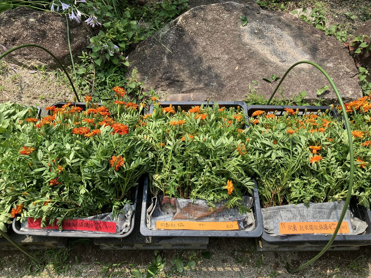防府市では小学校や自治会、老人会関係の花壇は市の緑化推進委員会に申請すると、6月末に夏の花、11月末に冬の花の苗を無償でもらえます。