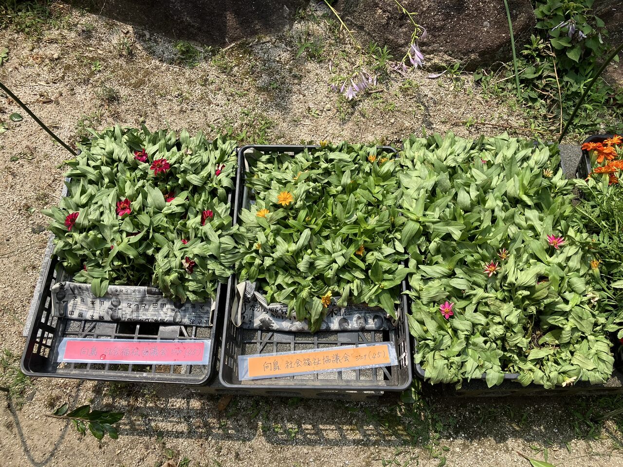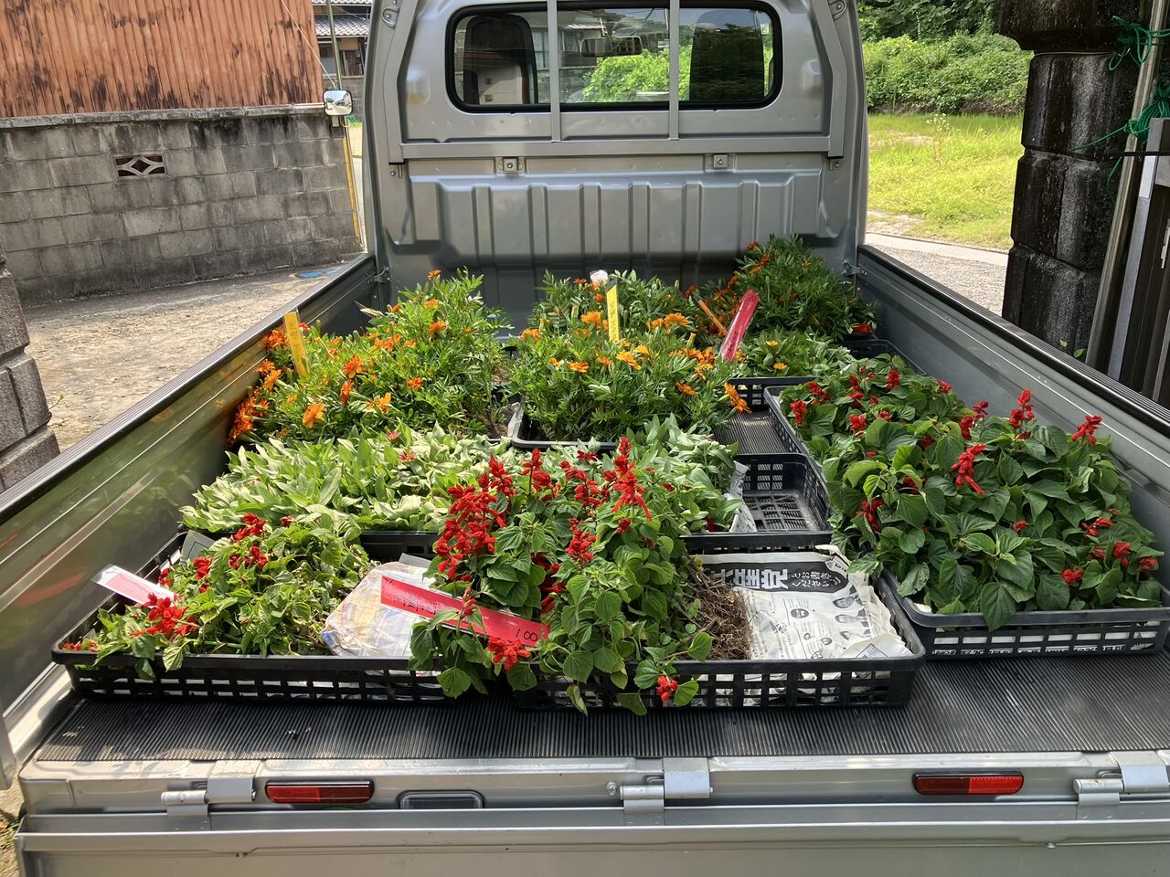 今日は午前中に花木センターに行って、自治会花壇の夏の花苗を受取ってきました。