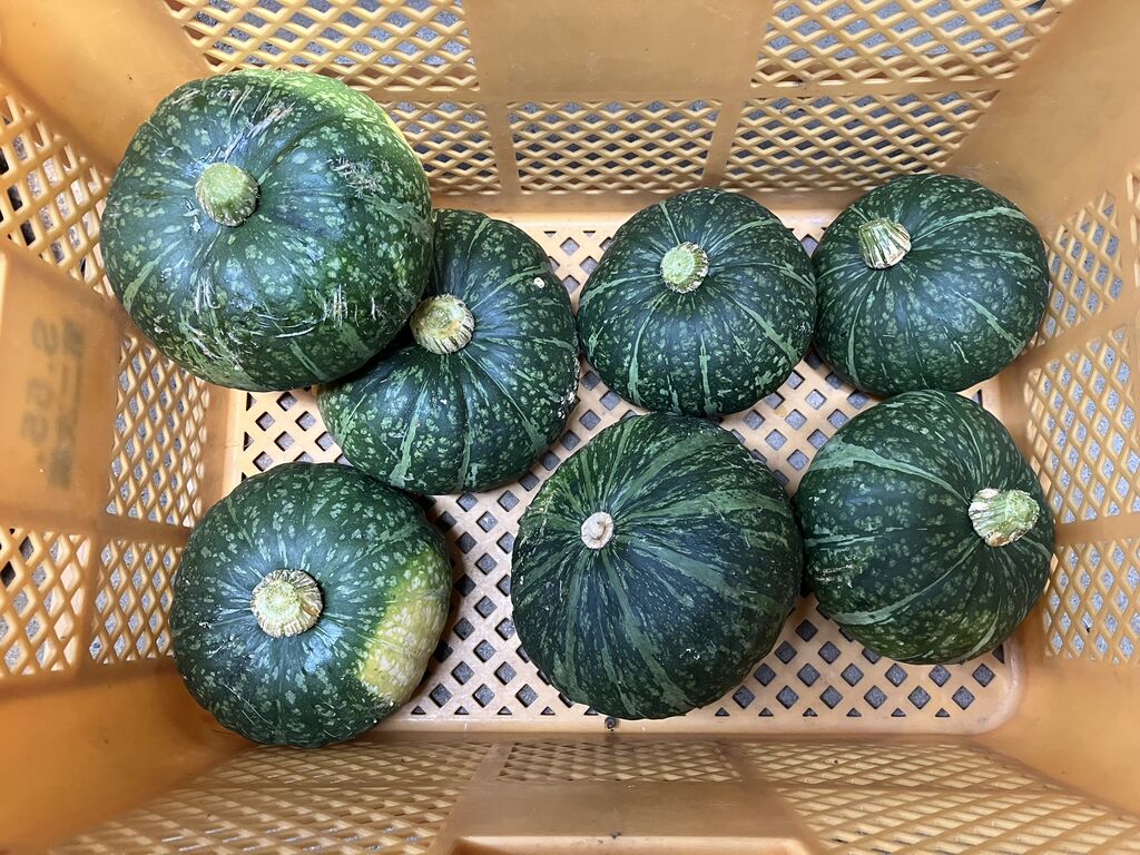 カボチャは「くりまさる」です。一ヶ月くらい置いておくと甘さが増します。