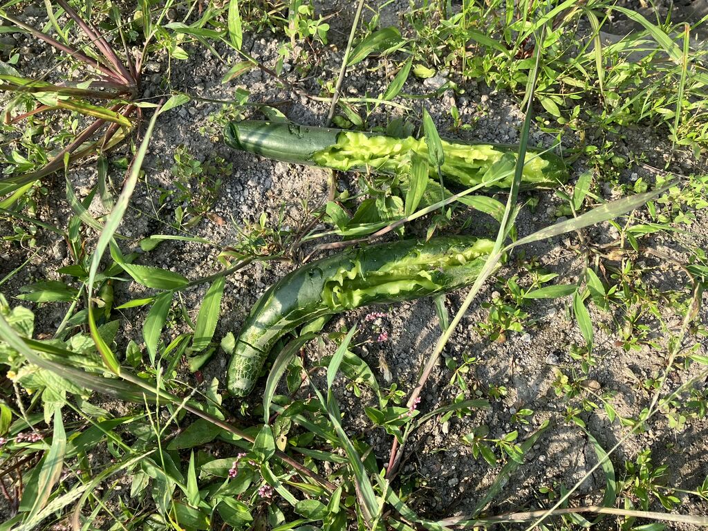 少なくなったキュウリをカラスが毎日2本くらい水代わりに、もいでかじっています。(^^;