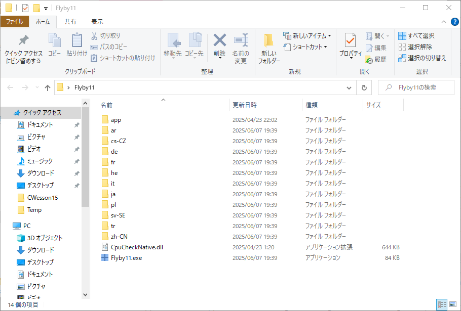 Flyby11.zipをダウンロードして、デスクトップなどに解凍します。