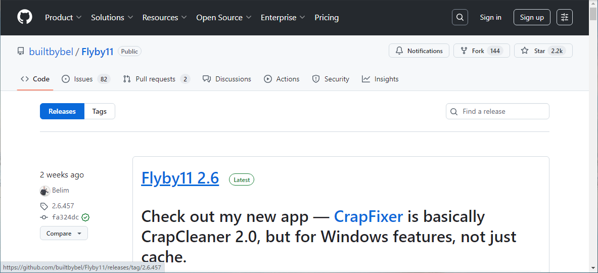 Flyby11のページからFlyby11をダウンロードします。現時点のFlyby11の版数は2.6でした。